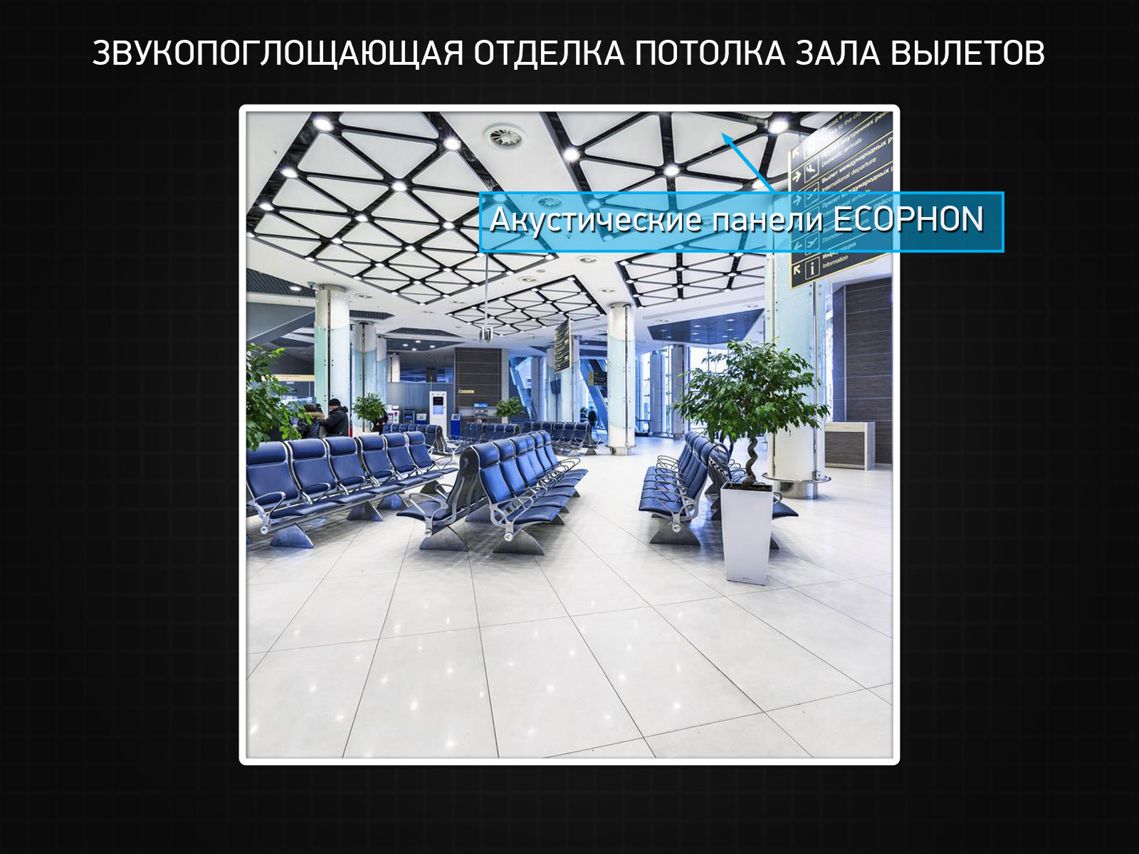 Звукопоглощающая отделка потолка зала вылетов