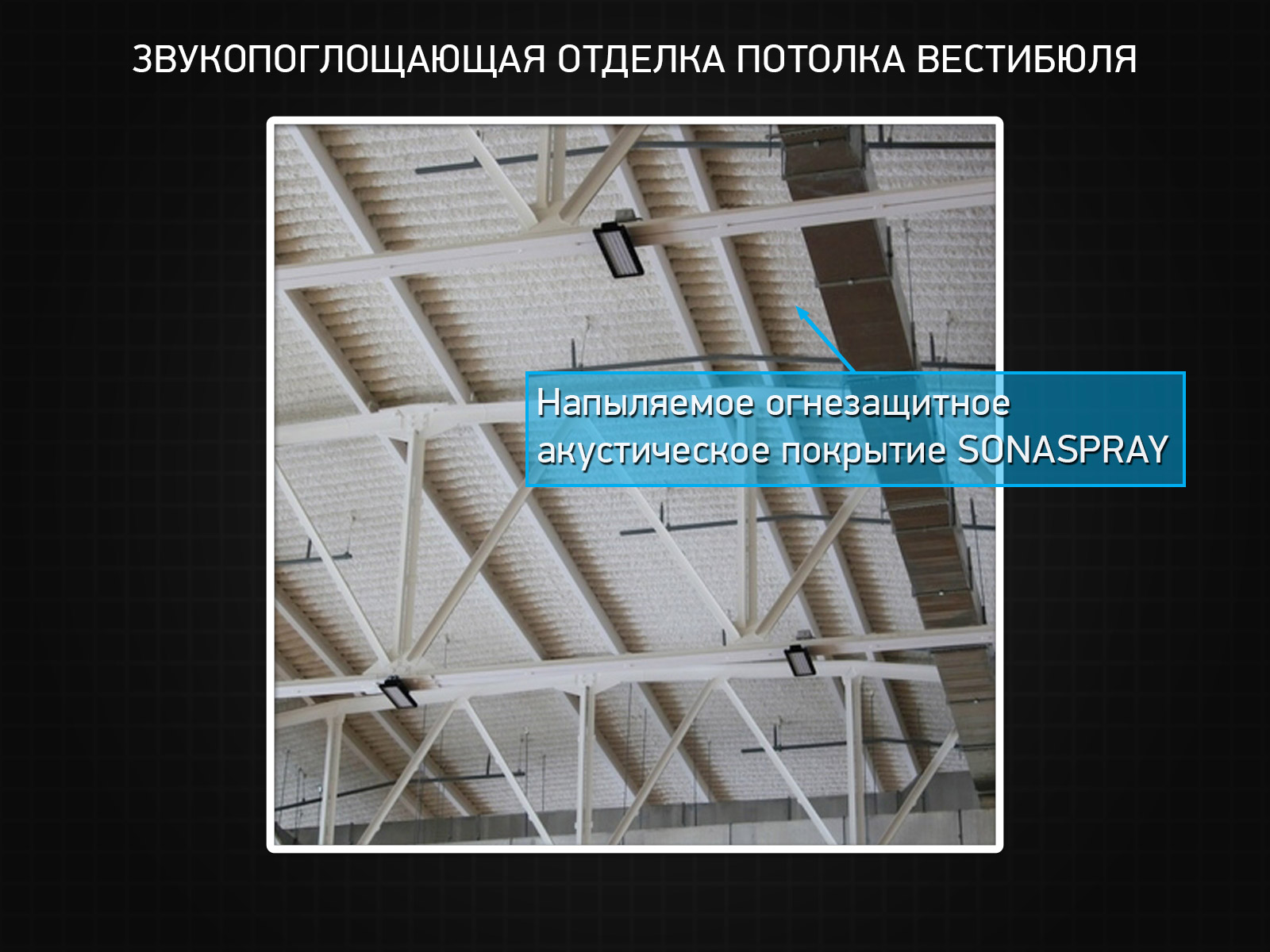 Звукопоглощающая отделка потолка вестибюля