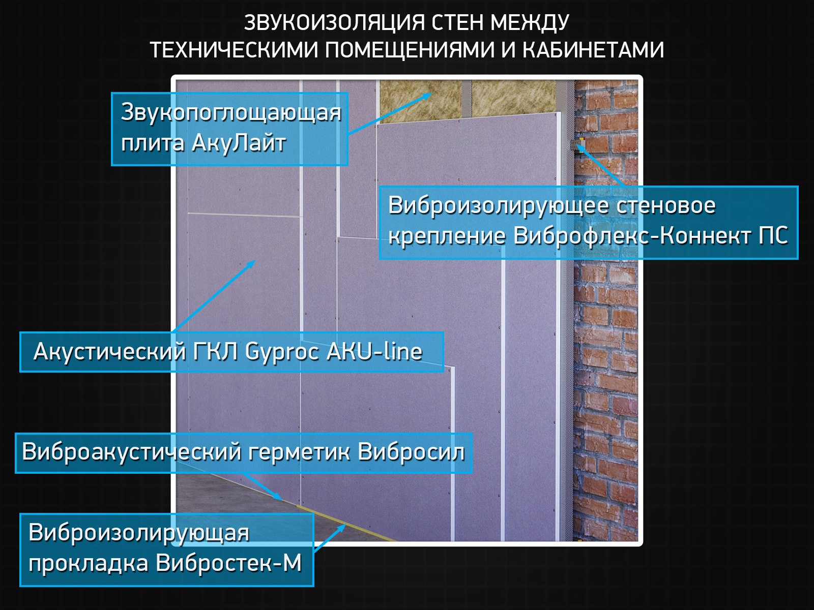 Звукоизоляция стен между техническими помещениями и кабинетами