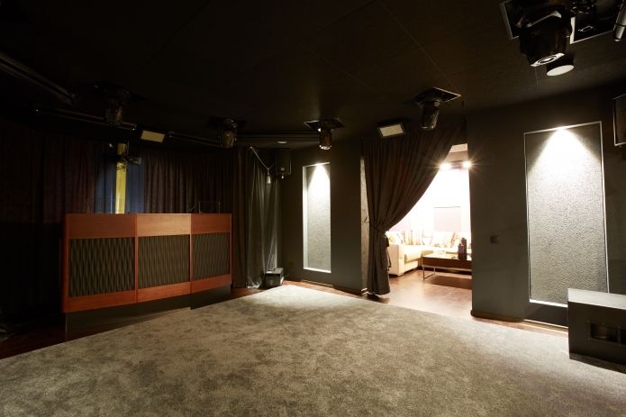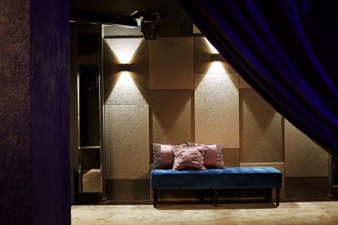 За задумом дизайнера використовувалися панелі різної товщини та різних тонів. Особливо виділяється «акустична» рама для дзеркала.