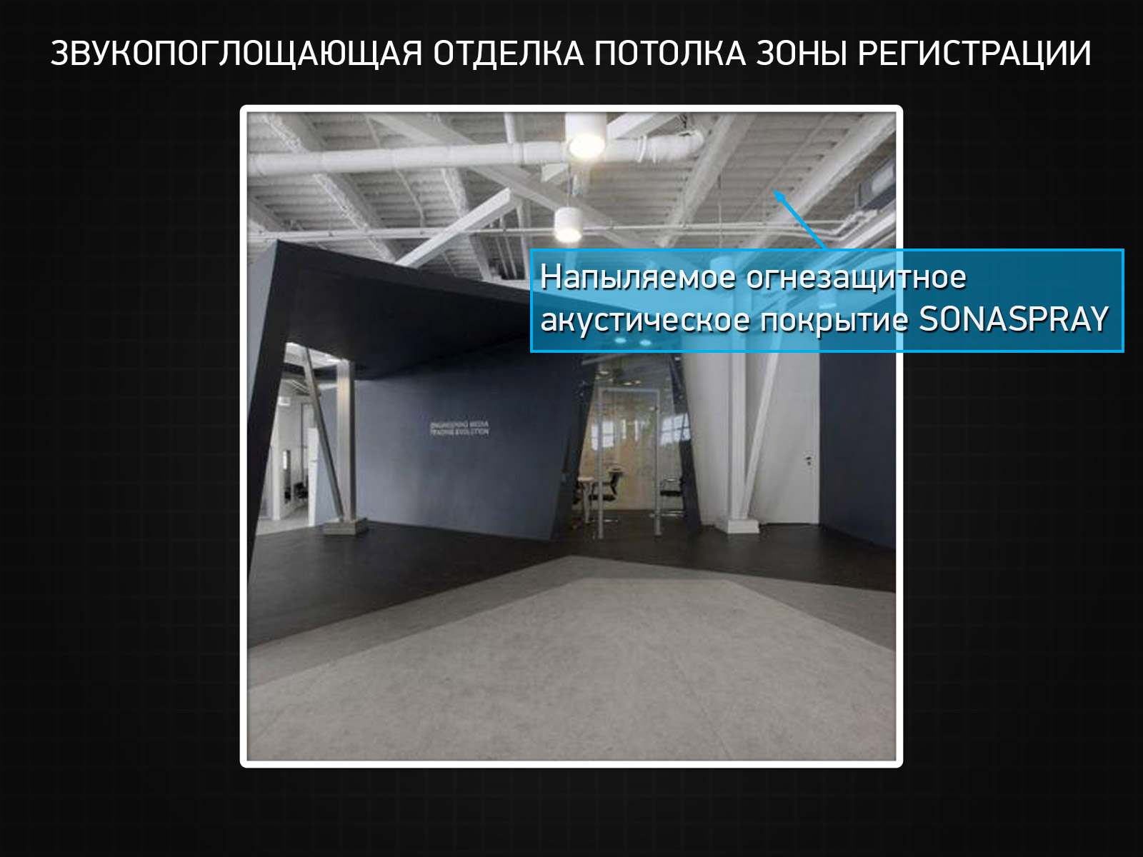 Звукопоглощающая отделка потолка зоны регистрации
