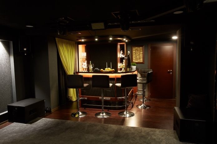 За задумом дизайнера використовувалися панелі різної товщини та різних тонів. Особливо виділяється «акустична» рама для дзеркала.